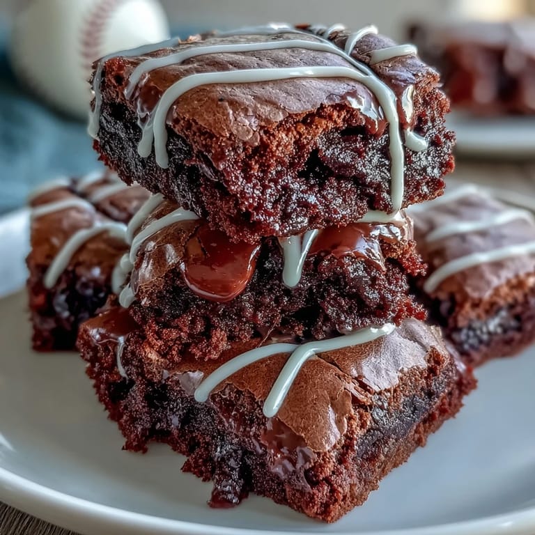 The secret to these brownie bites lies in the perfect balance of melted chocolate and butter, creating that signature fudgy texture everyone loves. The baseball laces are surprisingly simple to pipe, making this an accessible project even for decorating beginners. Mini muffin tins give each brownie the perfect round shape, reminiscent of a real baseball, while the white icing adds just the right amount of sweetness without overwhelming the rich chocolate flavor.