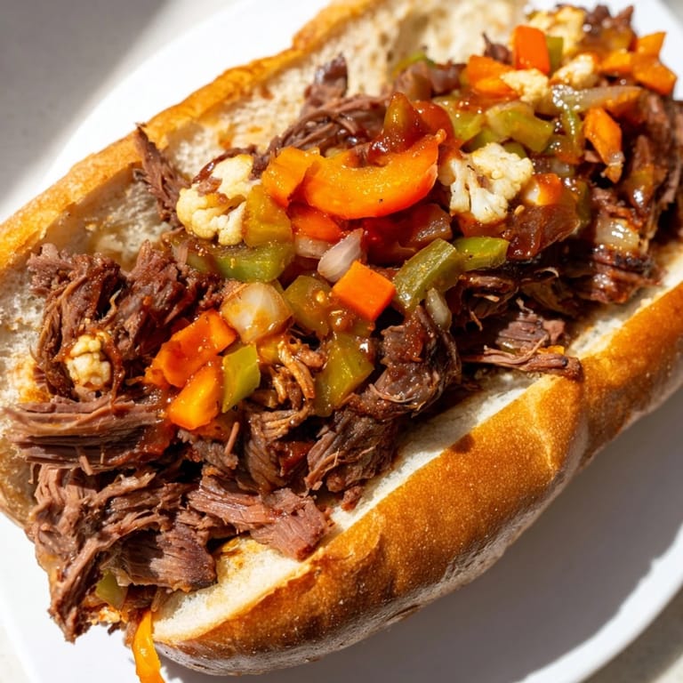 Save The first time I had an authentic Italian beef sandwich was during a layover in Chicago, standing at a counter at 2 AM while rain pelted against the windows. I watched the sandwich maker dip the entire roll into the jus before piling it high with meat and those bright, crunchy giardiniera. My jacket was soaked through, but warming my hands around that foil-wrapped bundle while juices ran down my wrist made everything feel right with the world.